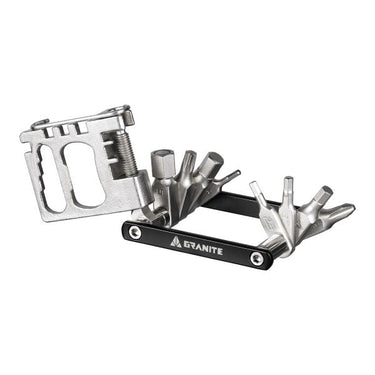 Granite Diverse 20 packs maximum functionality into an impressively slim form—just 11mm thick. Weighing only 104g, this ultra-compact multi-tool is built for riders who demand versatility without the bulk. With 20 essential functions—including hex bits (2 to 8mm), T25, PH2 screwdriver, chain tool and hook, spoke wrenches, socket wrenches, and even a bottle opener—it’s your all-in-one solution for trailside fixes and mid-ride adjustments.