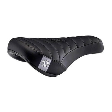 DEITY FRISCO DJ SADDLE /// PIVOTAL - Patented pivotal technology - Vintage moto tuck n roll styling - Mid profile with additional padding - Featuring lightweight PU foam - Synthetic cover with subtle graphics - Intended use: DJ/ Slopestyle - All black cover with subtle logo detail - 306 grams