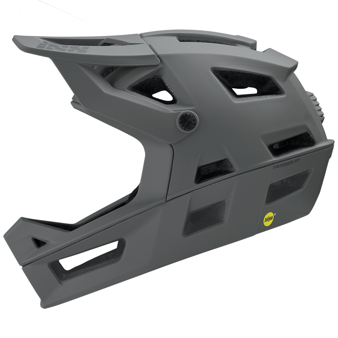 The Trigger FF is based on the successfully introduced Trigger AM helmet. It features patented (patent pending), state of the art technology and properties. The Trigger FF is designed alongside the characteristics of a modern all-mountain & trail orientated full face helmet with proper full face protection and a 3-level adjustable visor to secure space for goggles. Its patented (pending) technology of a completely integratated chin arch provides a world unique and first time introduced technology and therefore allows for highest structural strength by keeping the weight and volume as low and compact as possible. With +/- 595g (SM), the Trigger FF is nominated to be the lightest full face helmet in the market. It‘s featured VortexTM molded aeration system provides consistent airflow and cooling. The integrated FidlockTM magnetic closure system provides easy handling and proper safety. An ergonomic padding system ensures comfort without inhabiting the airflow. For improved fit and adaptability the Trigger FF comes with the iXS specific ErgoFit UltraTM retention system allowing horizontal and vertical adjustment with precision interlocking and therfore offers an easy and most comfortable and safe fit.