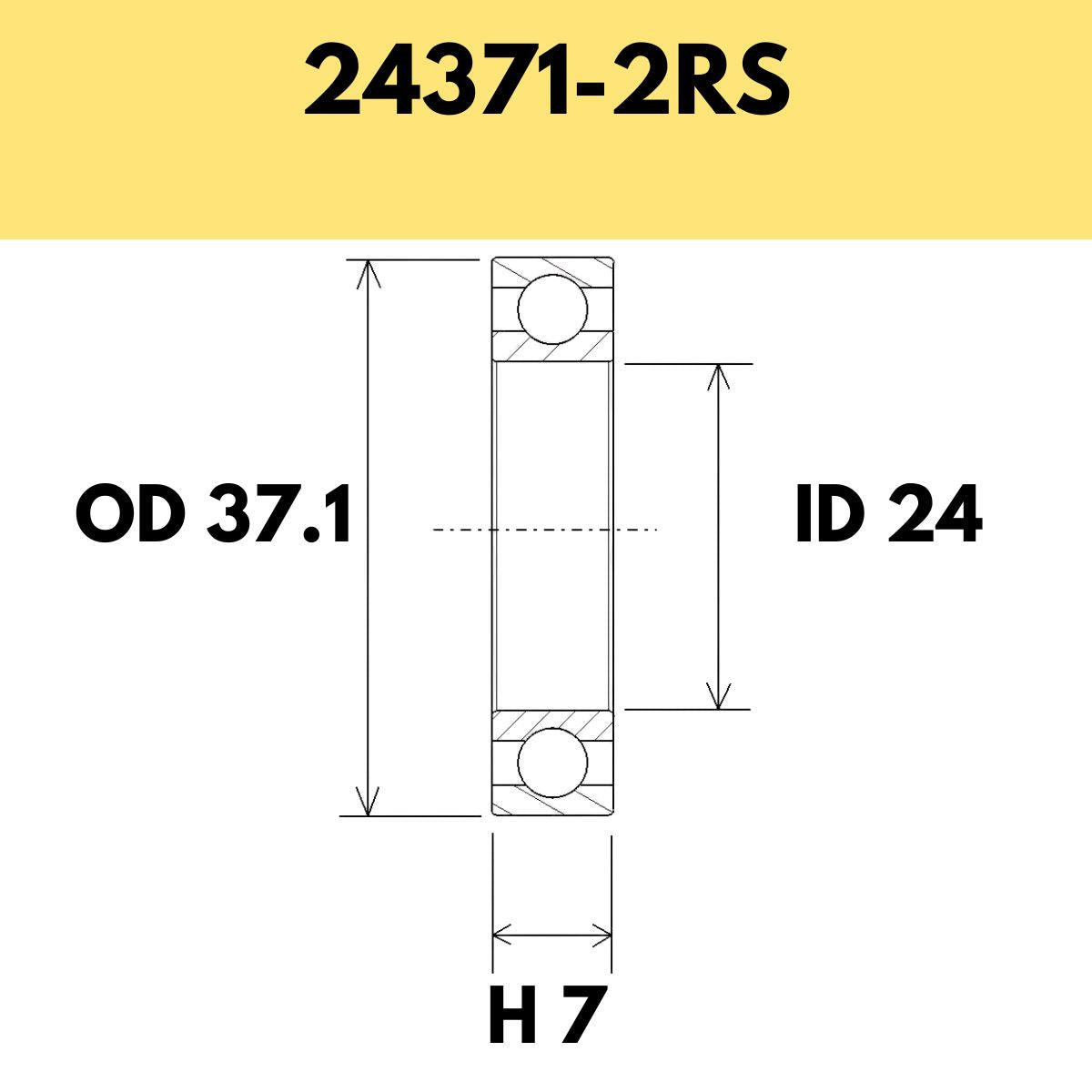 SPECIFICATIONS NAME: 24427-2RS OUTER DIAMETER: 37.1mm INNER DIAMETER: 24mm HEIGHT: 7mm Black Bearing radial bearings are machined and assembled to precise tolerances. They are offered in four material/build options to suit a broad range of applications at any budget. These bearings are best suited to components that undergo continuous rotation - think hubs, bottom brackets, or any part that spins. While they can be used in suspension pivots, the full-complement MAX versions are best suited to this application for optimum load management and longevity. B3 - CHROME STEEL B3 bearings are ABEC-3 grade and deliver reliable performance at a sharp price. The quality is comparable to the bearings that are typically specified as original equipment (OE) from many component manufacturers. Chrome steel balls - SAE52100 - ABEC-3 Chrome steel races - SAE52100 Chrome steel cage 2RS seals provide water and dust resistance Premium quality grease B5 - PREMIUM CHROME STEEL B5 Bearings are ABEC-5 grade. They will upgrade the performance of many stock bearings, rolling faster and smoother with exceptional durability. Chrome steel balls - SAE52100 - ABEC-5 Steel races - SAE52100 - with optmized internal design Chrome steel cage Reinforced 2RS seals for improved water and dust resistance Premium quality grease B5 STAINLESS - STAINLESS STEEL The bearing of choice for use in wet conditions. B5 Stainless bearings are highly corrosion-resistant, maintaining consistently smooth and fast performance under challenging conditions. Stainless steel balls - KS440 - ABEC-5 Stainless steel races - KS440 - with optmized internal design Steel cage - AISI-304 Reinforced 2RS seals for improved water and dust resistance Premium quality grease CERAMIC HYBRID Upgrade to Black Bearing Ceramic Hybrid bearings for ultimate performance. Premium silicon nitride balls have incredible durability and smoothness. These are precisely assembled into an ultra-low friction bearing unit optimised for competition and premium performance. Silicon nitride balls - SI3N4 Steel SAE52100 / Stainless steel KS440 races with optmized internal design Polyamide cage with low friction 2RS low-friction seals for fast rolling while providing water and dust resistance Premium quality grease