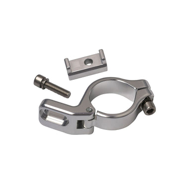 This unique adapter clamp has a slot to allow a braze-one front derailleur to slide a total of 10mm to fit cranksets with chainlines a particular derailleur may not been originally designed to work with. Example: If you have an old road front derailleur, but want to run it with a crankset that has a wider chainline If you want to use the Fiddler as just a regular front derailleur clamp without any special adaptation, just set your front derailleur to most inboard part of the slot. Forged and CNC'd aluminum construction For braze-on front derailleurs only Only available for 28.6mm seat tubes at this time (most steel road, CX and gravel bikes) 10mm of adjustment Anodized silver Note of caution: This product is recommended for experienced mechanics who know what a properly set up front derailleur looks like and functions like and also know what chainline set-ups are improper, and can cause shifting problems or premature wear. This adapter doesn't change the cable pull of the front derailleur. Reckless experimentation with this product can result in an unsafe bicycle. Thoroughly test a new set up on the workstand before riding.
