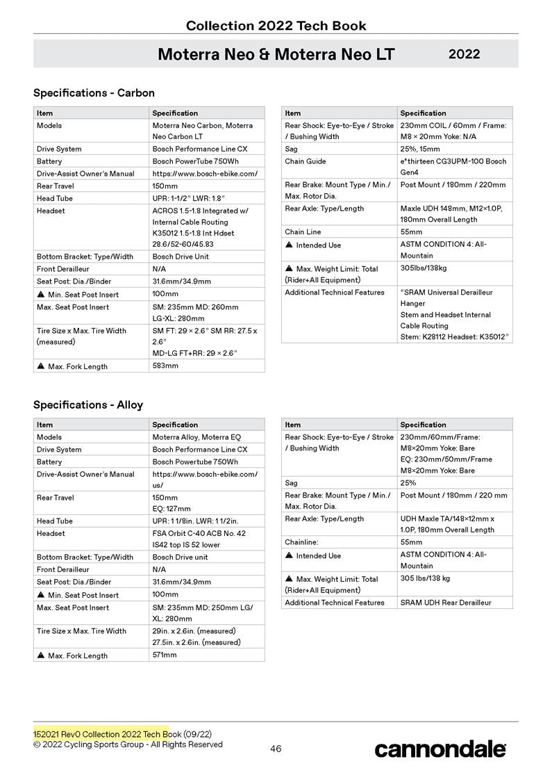 • Tire Size x Max. Width - SM FT: 29 x 2.6” SM RR: 27.5 x 2.6”, MD-LG FT+RR: 29 x 2.6”
