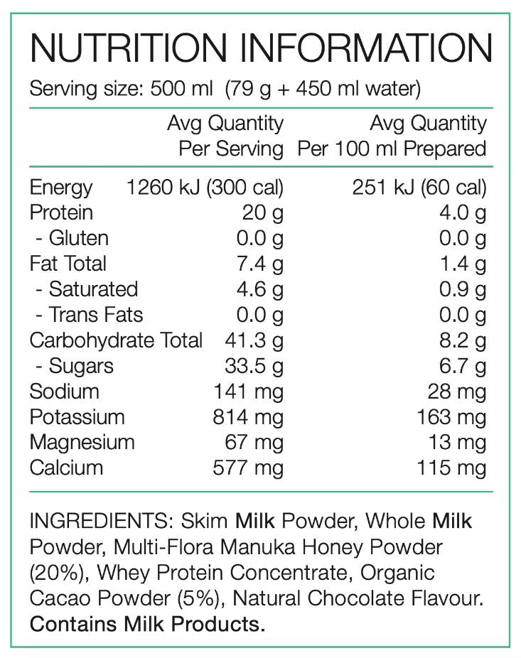 PURE Recovery Shake is a premium, natural post-exercise drink powder containing a delicious blend of raw organic cacao powder, milk proteins, New Zealand honey powder and electrolytes.