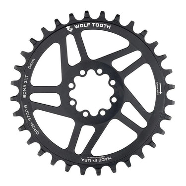 Our new Direct Mount Chainrings for SRAM 8-Bolt Mountain Cranks are optimised for the new SRAM Transmission mountain groupsets and T-Type chains. These are for riders who have the latest SRAM T-Type Transmission groupset and want a different chainring size beyond stock offerings, or who want to upgrade to a Made In USA option with an optimised tooth profile for better performance. The 0mm offset is for SRAM MTB cranks with DUB spindles that require chainring positioning for the 55mm chainline specified for SRAM T-Type Transmission groupsets. COMPATIBILITY These direct mount chainrings will replace your existing chainring and spider or replace a direct mount chainring for SRAM T-Type Transmission cranksets and other SRAM cranks that use the 8-bolt standard. SRAM T-Type Transmission DUB Wide MTB cranksets use the 8-bolt direct mount standard. Chainline of 55mm with 3mm offset for DUB Wide MTB DROP-STOP TECHNOLOGY Wolf Tooth’s patented Drop-Stop® wide/narrow tooth profile delivers ultimate chain retention and mud shedding ability. Drop-Stop B is compatible with all chains except Shimano HG+ and Campagnolo 13-speed chains. RECOMMENDATIONS We recommend the use of a clutch style rear derailleur for the best chain security. Use the included custom T20 bolts. Torque 4Nm with T20 tool SPECIFICATIONS Weights: 30T • 65g | 32T • 69g | 34T • 73g | 36T • 77g Material: 7075-T6 aluminum Made in the USA The Story Wolf Tooth was founded to design and manufacture precision cycling products that emphasize function, performance, and reliability to meet the needs of our fellow racers and riders. We are a group of cyclists in Minneapolis, Minnesota that spend a lot of time talking about bike components. Like most detail-obsessed riders, we're always looking for new products that could make our bikes lighter, faster, more versatile, or more reliable. We pride ourselves on delivering premium products of the highest quality.