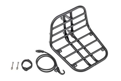The Hauler Rack is the Goldilocks of our front racks: Big enough to carry a whole lot of cargo but small enough to let you maneuver the bike with ease, it is just the right size for the Tern GSD and HSD. With an open-ended design and a handy bungee cord, the Hauler Rack is ready to carry backpacks, boxes, and other bulky items. And with mounting holes on the base, you can easily bolt a crate to the rack for a semi-permanent solution to carry groceries or smaller items.