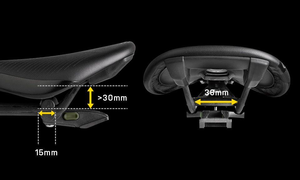 - Compatible with steel, CroMo, titanium, and carbon standard saddle rails with 36mm width spacing and at least 30mm height spacing.