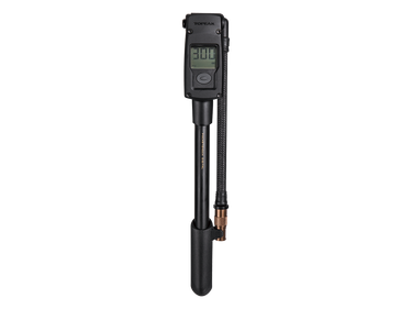 A compact shock pump with easy-to-read digital gauge delivering accurate pressure readings up to 300psi / 20.7bar. The Pressure-Rite connector and air release button make dialing in your pressure quick and easy, and there is no pressure loss when removing the connector while the rotating hose take stress off the valve stem when inflating.