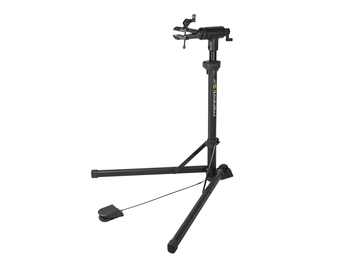 The PrepStand® eUP Pro is the first lift assisted foldable workstand – ideal for working on e-Bikes and other heavyweight bikes. Additional Reinforced Support Unit adds stability while a bike is mounted. The foot pedal operated, built-in pressurized cartridge provides an additional 17kg (37lb) of lifting power making easy work of raising and lowering most bikes weighing up to 35kg (77lb). A 360º rotatable clamp head with non-marring jaws quickly and securely holds your bike stable for repairs, cleaning and general maintenance. Quick release legs conveniently fold to a compact size for travel and storage.