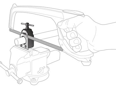 Threadless Saw Guide provides straight cut on steer tubes. Accommodates 1”, 1-1/8” and 1-1/4” treadless steer tubes. Includes 2 mm Saw Guide Spacer for carbon saw blades (saw blades not included).