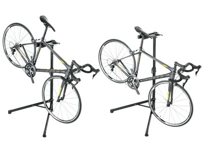 This simple and easy-to-use workstand does not require any mounting or clamping action which may scratch or damage your bike seat tube surface or seatpost. Just lift your bike, hang seatpost or seat tube on the arm of bike holder, and lift up rear wheel for bike maintenance and adjustments. Optional tool tray holds tools and small parts close for easy access.