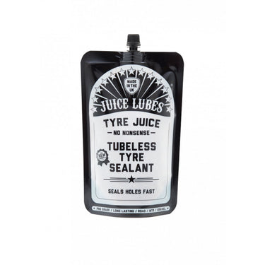 Tyre Juice is a World Cup downhill used, abused and approved sealant. Tyre Juice wards off punctures and pinch-flats by coating your rubber in a protective force field. Slosh it in and you’ll enjoy a puncture-proof performance on the thorny roads and rocky trails. It also allows you to run lower pressures, meaning more grip, more comfort and more speed. It’s a doddle to install and battles faff every time you ride. Our unique design seals holes up to 7mm, doesn't ball up and is ammonia-free so won’t damage wheels or tyres and won’t cause allergic reactions. It's water washable for less mess and should last 6-9 months between top-ups. Suitable for Downhill/Enduro/Road/Gravel/MTB Contains fibre particles to help fill large holes and tears Ammonia-free synthetic latex Lasts up to 9 months Seals up to 6mm holes Seals porous tyres and bead/rim gaps Operating pressures of 15-120psi CO2 Compatible Water washable Compatible with tubeless-ready and full UST wheels/tyres Non-corrosive formula No latex so no latex allergy problems Environmentally safe Note: Not to be mixed with natural latex sealants